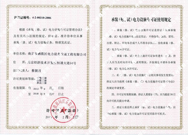 承裝(修、試)電力設(shè)施許可...